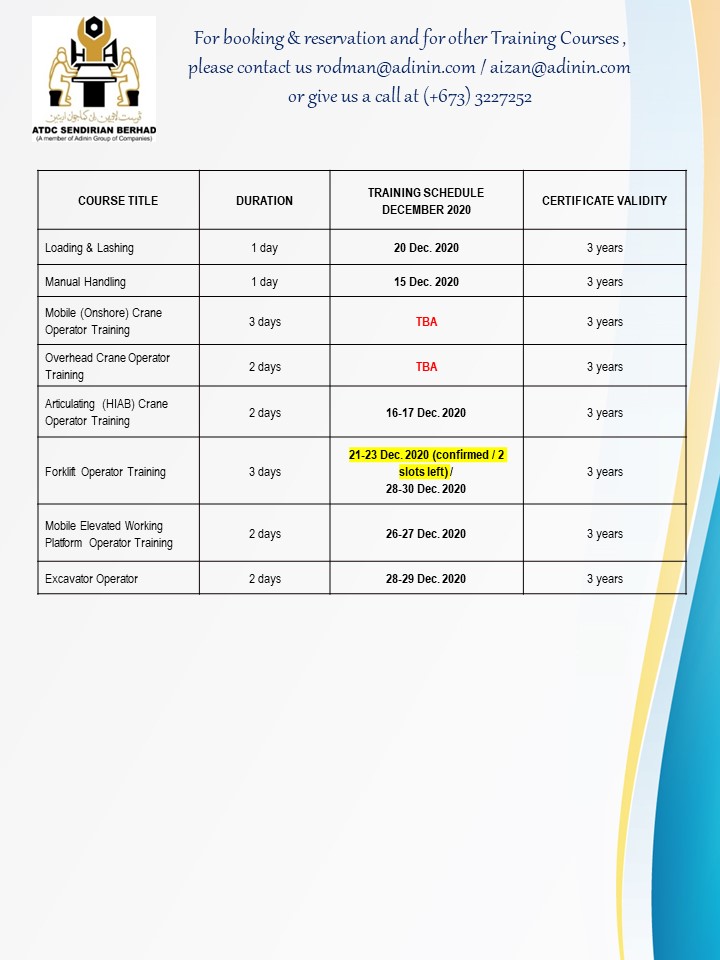 UPDATED TRAINING SCHEDULES – DECEMBER 2020 (as of 13 December 2020) December 13, 2020 UPDATED TRAINING SCHEDULES – DECEMBER 2020 (as of 13 December 2020)