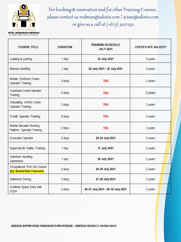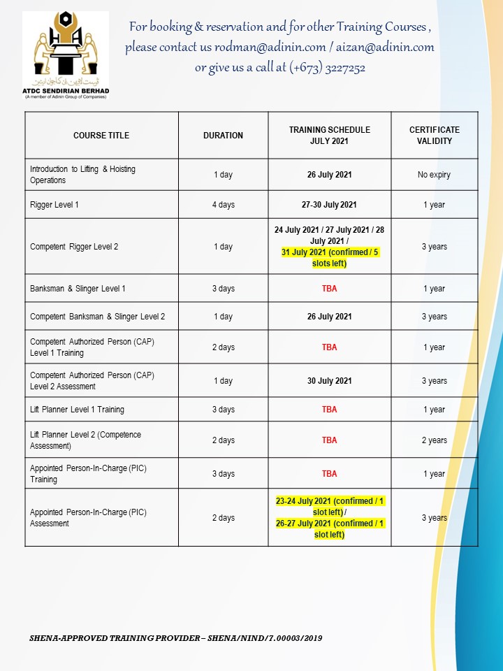 UPDATED TRAINING SCHEDULES – JULY 2021 (as of 21 July 2021) July 21, 2021 UPDATED TRAINING SCHEDULES – JULY 2021 (as of 21 July 2021)