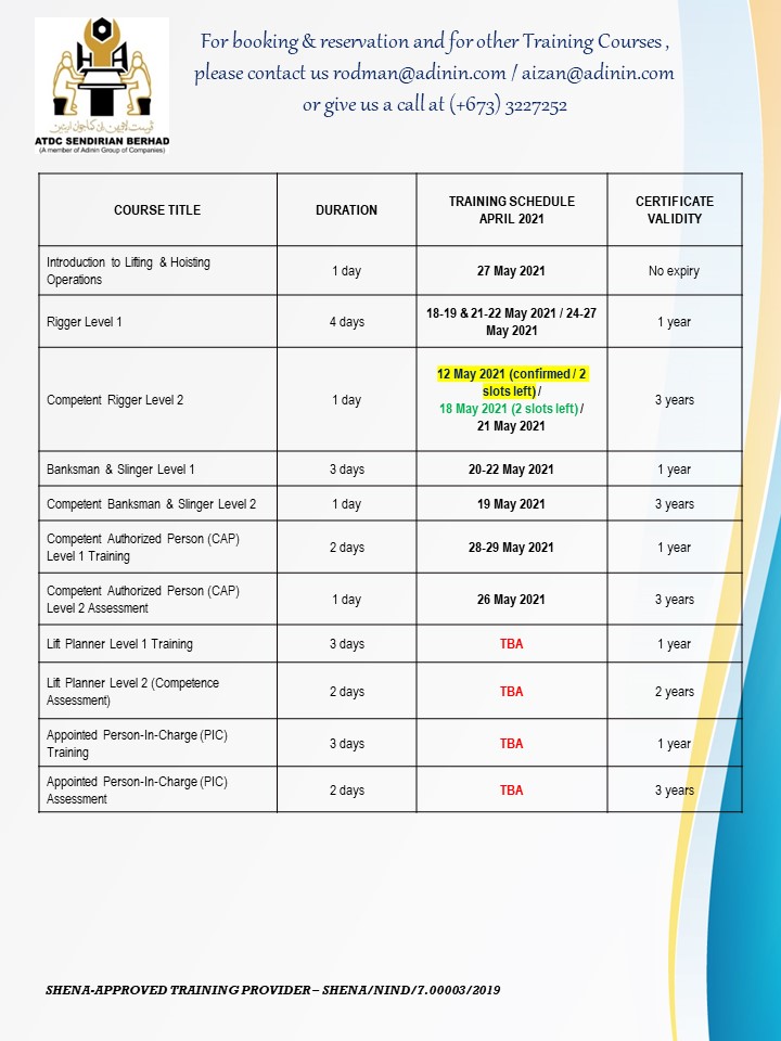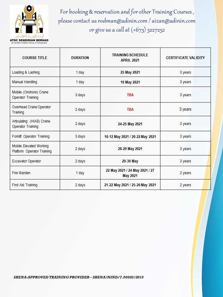 UPDATED TRAINING SCHEDULES – MAY 2021 (as of 9 May 2021) May 9, 2021 UPDATED TRAINING SCHEDULES – MAY 2021 (as of 9 May 2021)