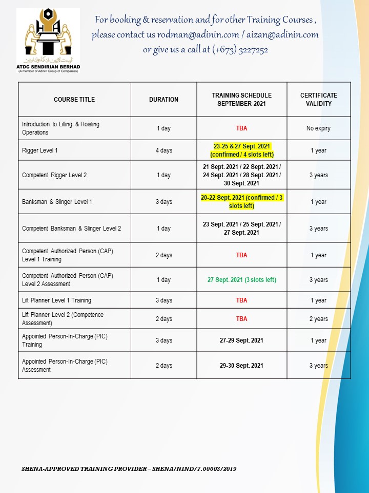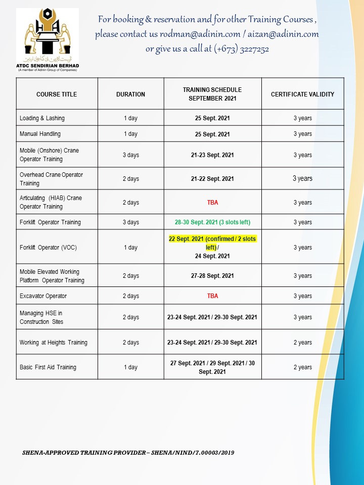 UPDATED TRAINING SCHEDULES – SEPTEMBER 2021 (as of 19 September 2021) September 19, 2021 UPDATED TRAINING SCHEDULES – SEPTEMBER 2021 (as of 19 September 2021)