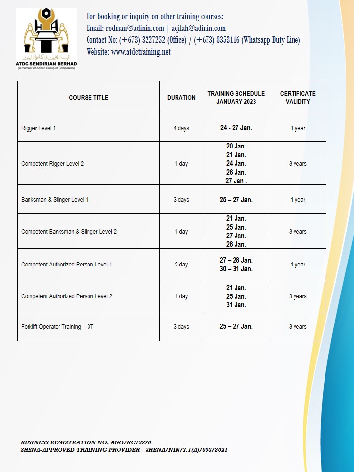 ATDC TRAINING SCHEDULES – JANUARY 2023 (as of 16 January 2023 January 16, 2023 ATDC TRAINING SCHEDULES – JANUARY 2023 (as of 16 January 2023)