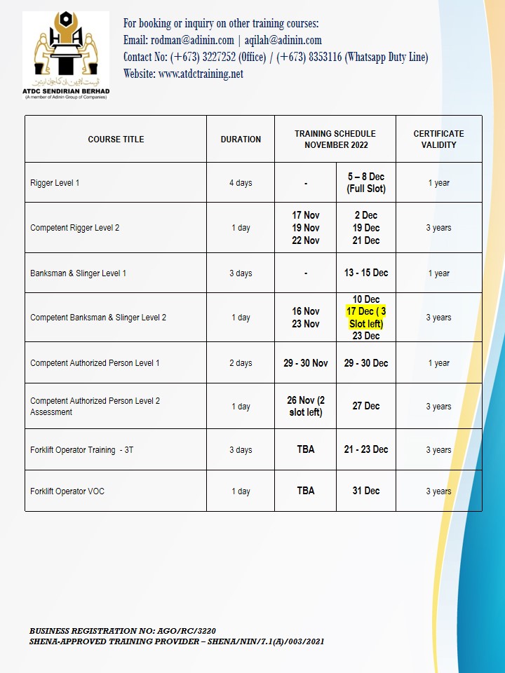 UPDATED TRAINING SCHEDULE – NOVEMBER & DECEMBER (as of 16 November 2022) November 16, 2022 UPDATED TRAINING SCHEDULE – NOVEMBER & DECEMBER (as of 16 November 2022)