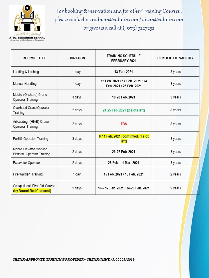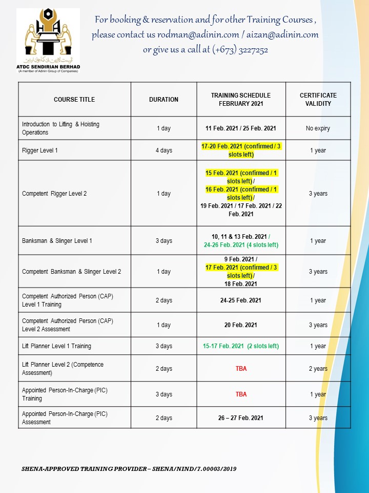 UPDATED TRAINING SCHEDULES – FEBRUARY 2021 (as of 6 February 2021) February 6, 2021 UPDATED TRAINING SCHEDULES – FEBRUARY 2021 (as of 6 February 2021)
