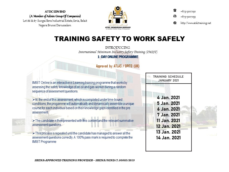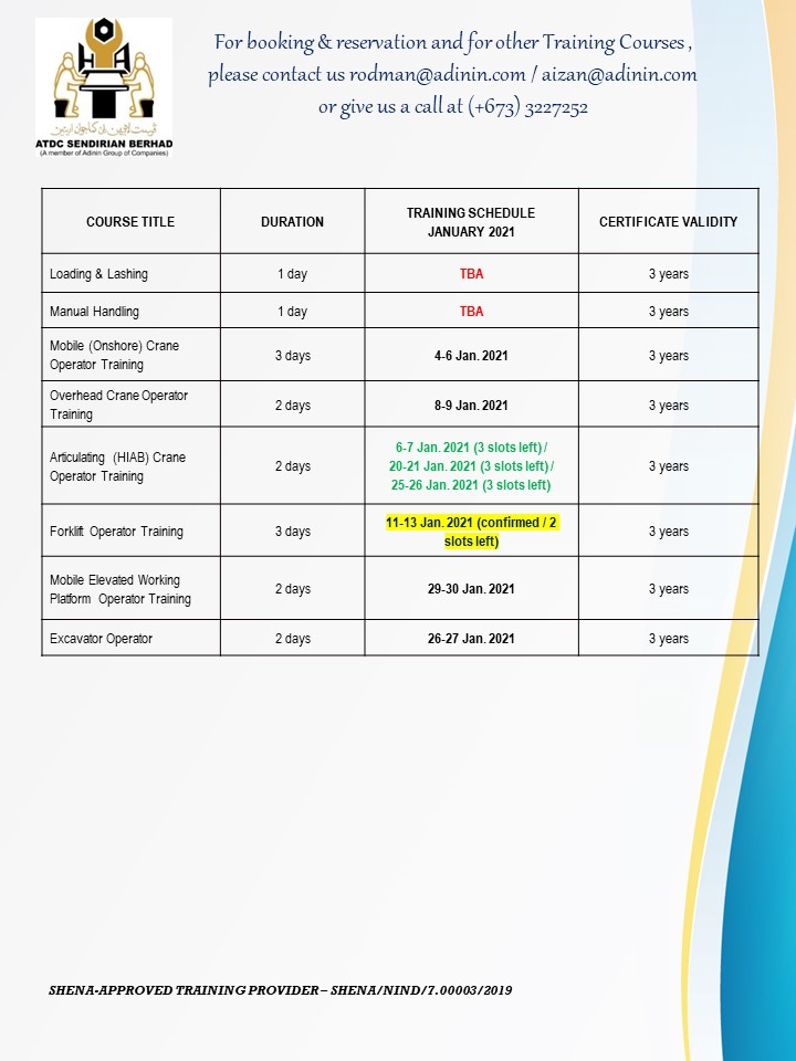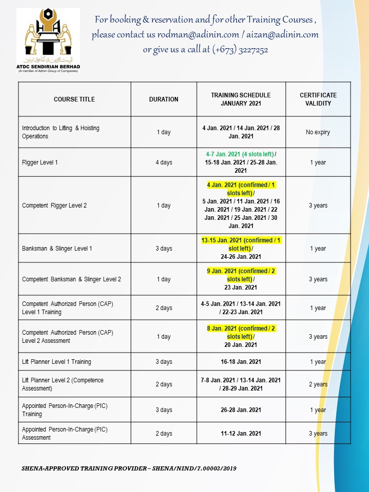 UPDATED TRAINING SCHEDULES – JANUARY 2021 (as of 1 January 2021)