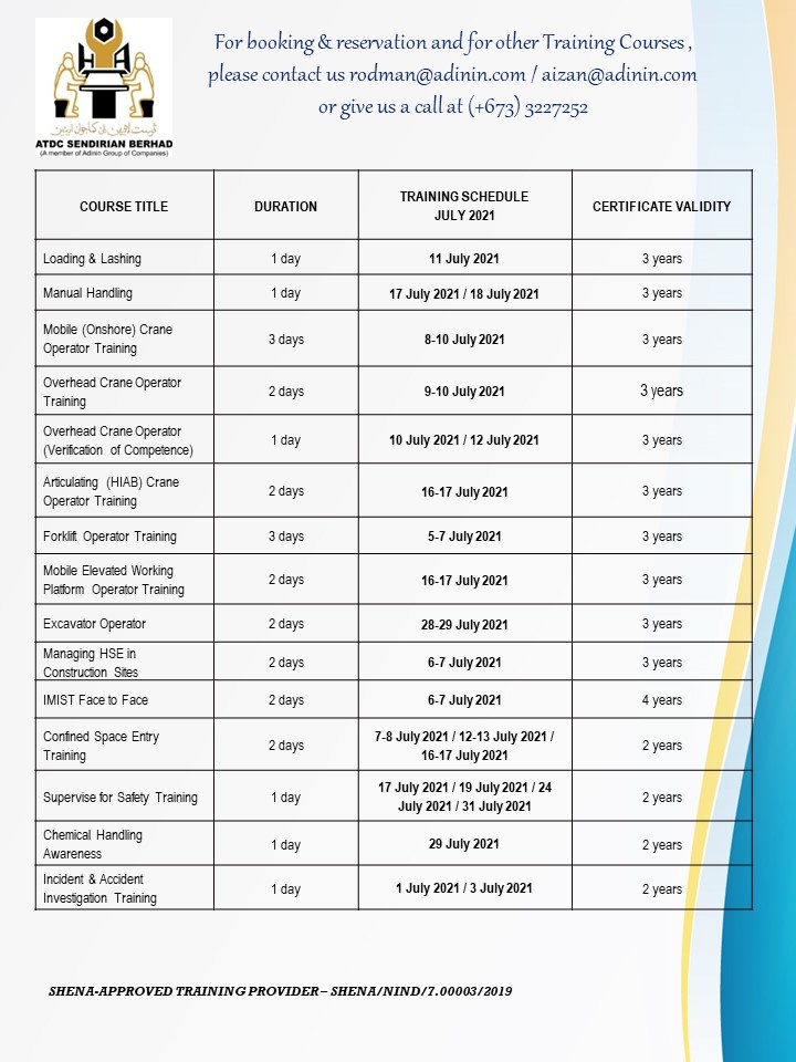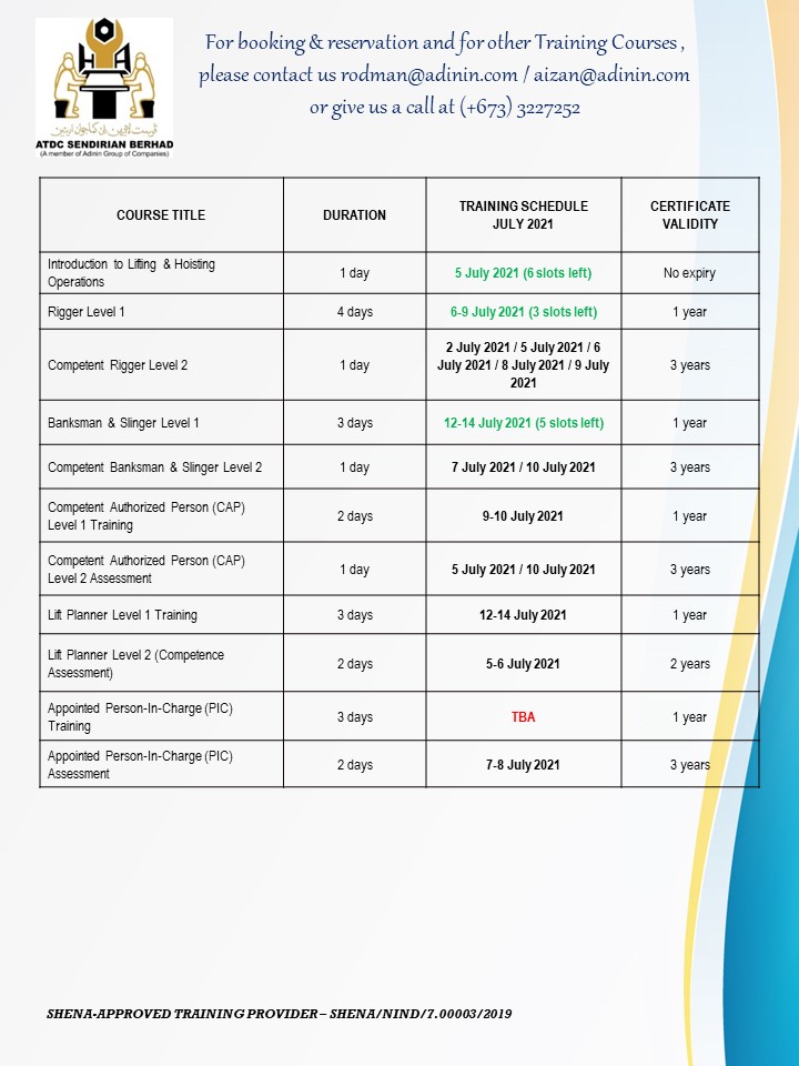 UPDATED TRAINING SCHEDULES – JULY 2021 (as of 29 June 2021) June 29, 2021 UPDATED TRAINING SCHEDULES – JULY 2021 (as of 29 June 2021)