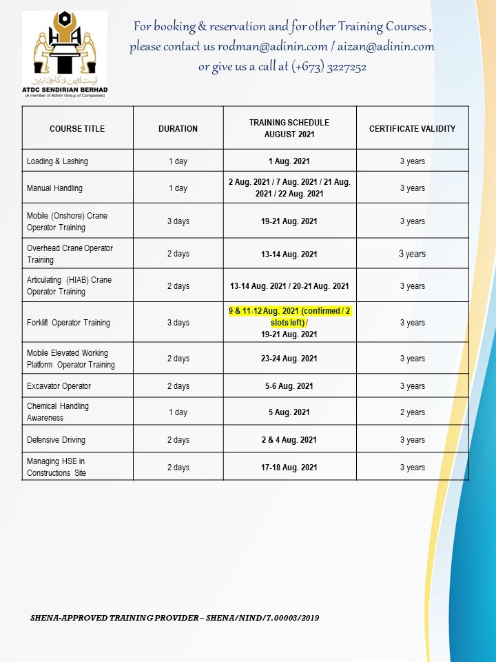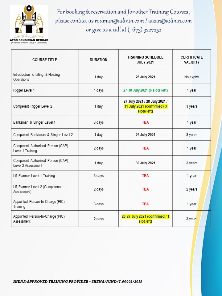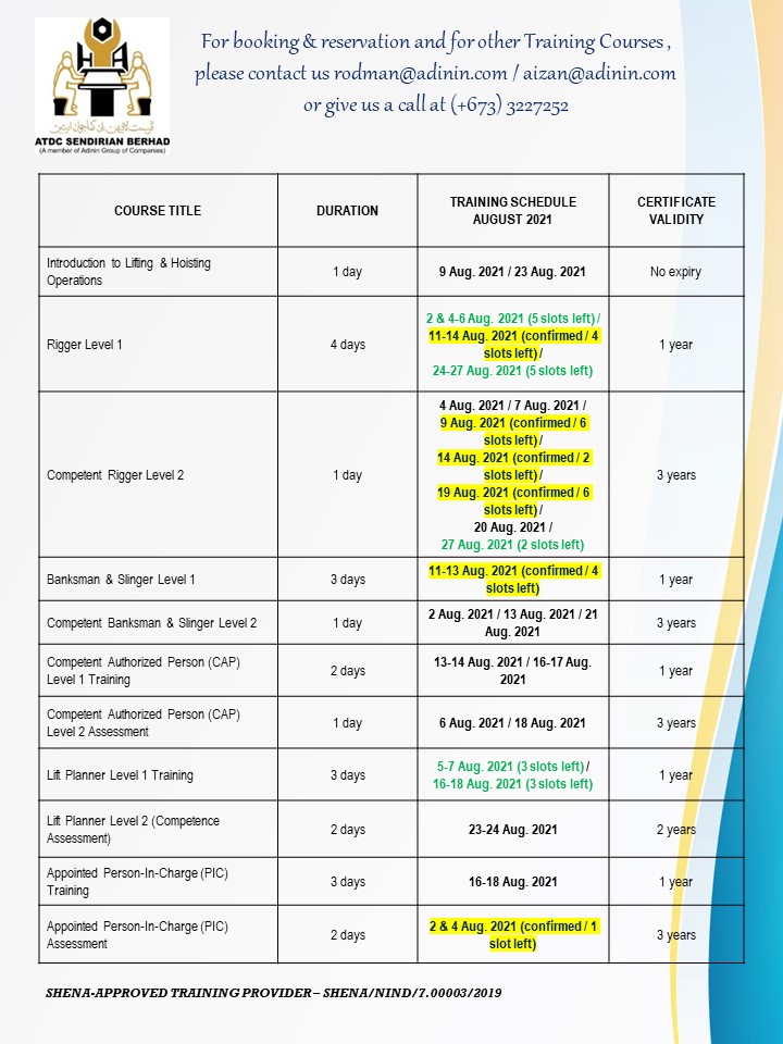 UPDATED TRAINING SCHEDULES – JULY & AUGUST 2021 (as of 24 July 2021) July 24, 2021 UPDATED TRAINING SCHEDULES – JULY & AUGUST 2021 (as of 24 July 2021)