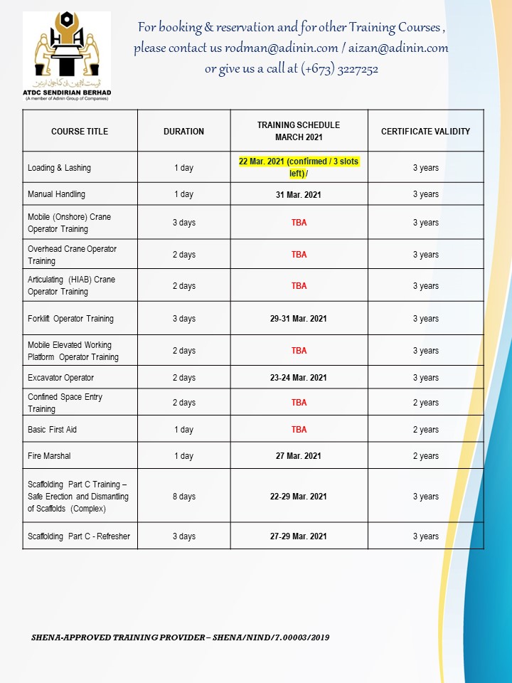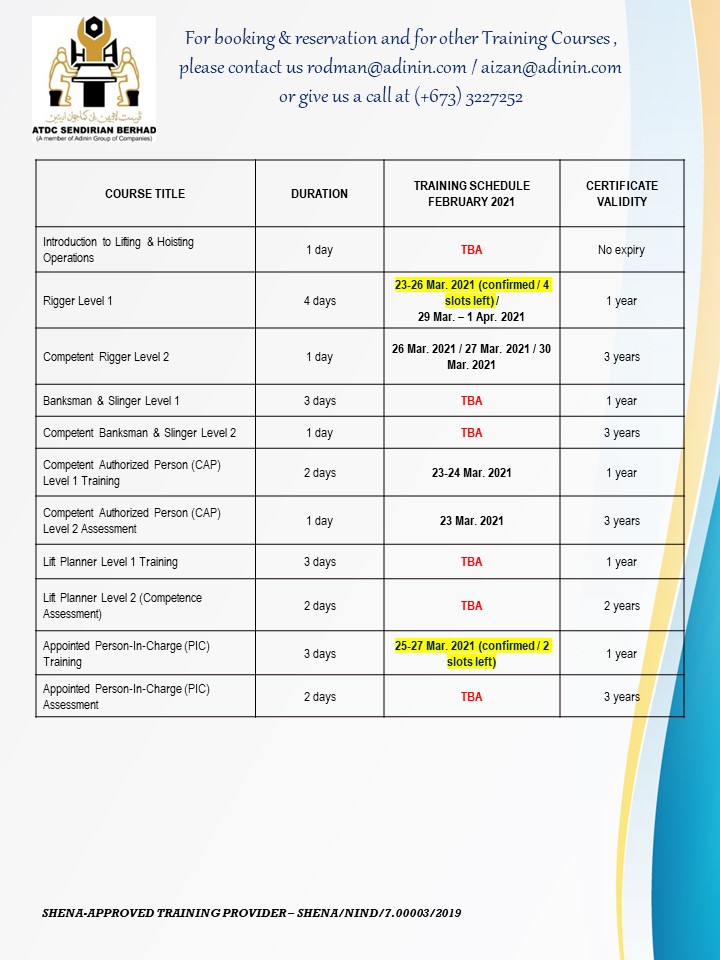 UPDATED TRAINING SCHEDULES – MARCH 2021 (as fo 20 March 2021) March 20, 2021 UPDATED TRAINING SCHEDULES – MARCH 2021 (as of 20 March 2021)