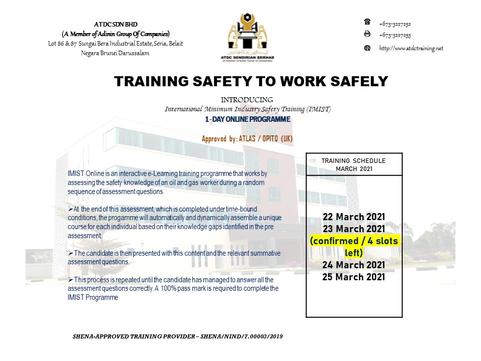 ATDC SDN BHD Staff Trained to Become Fire Marshals ATDC SDN BHD staff has attended a productive three-day Fire Marshall Training conducted by Brunei’s Fire and Rescue Department last […] Read Post »