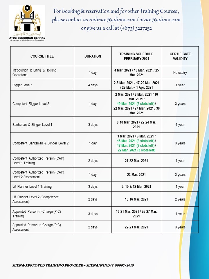 UPDATED TRAINING SCHEDULES – MARCH 2021 (as of 25 February 2021) February 25, 2021 UPDATED TRAINING SCHEDULES – MARCH 2021 (as of 25 February 2021)