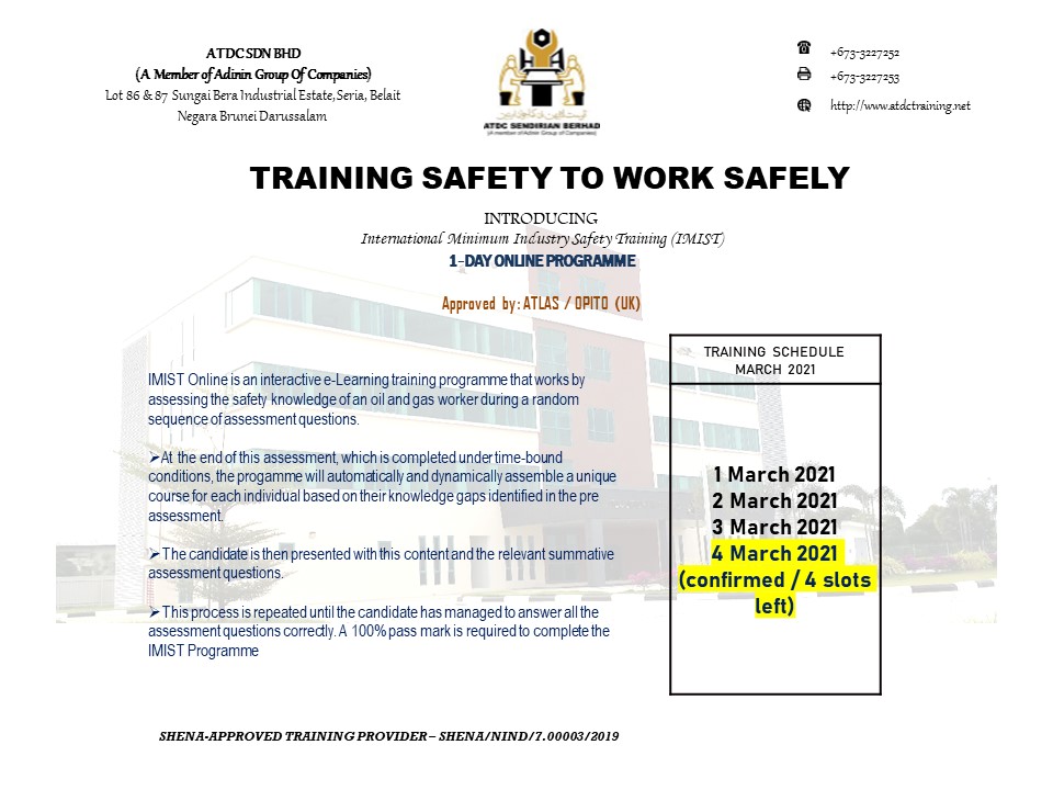 ATDC SDN BHD Staff Trained to Become Fire Marshals ATDC SDN BHD staff has attended a productive three-day Fire Marshall Training conducted by Brunei’s Fire and Rescue Department last […] Read Post »