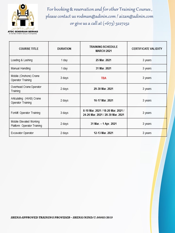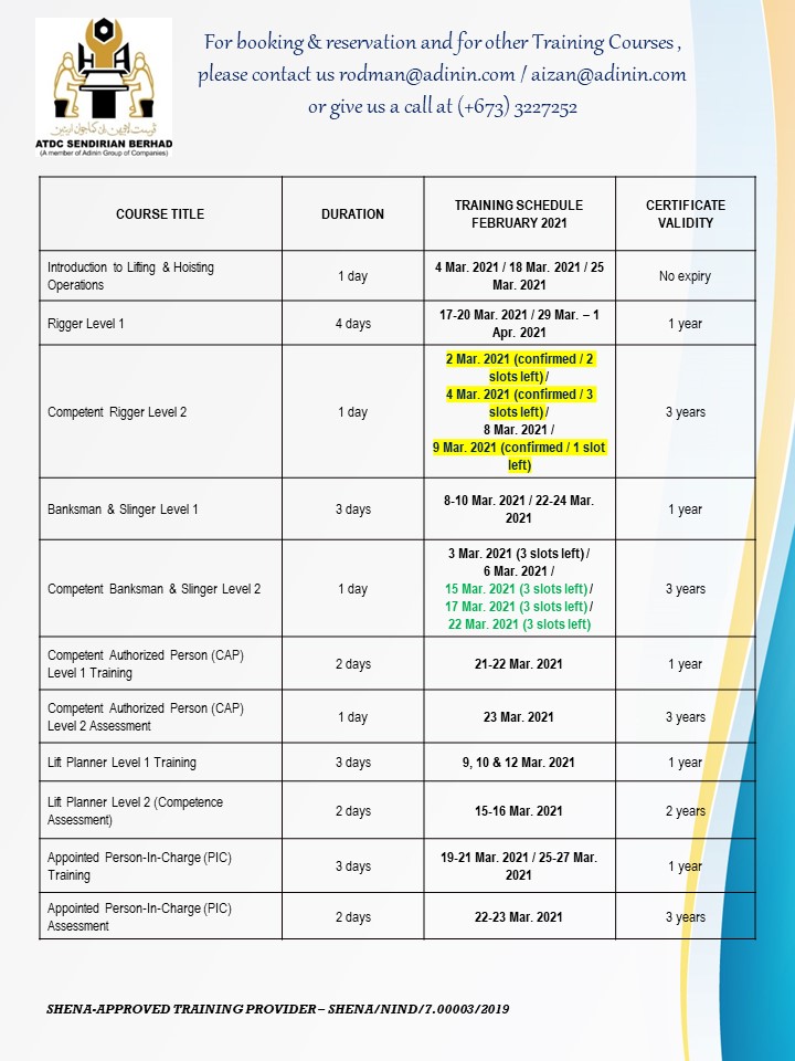 UPDATED TRAINING SCHEDULES – MARCH 2021 (as of 28 February 2021) February 28, 2021 UPDATED TRAINING SCHEDULES – MARCH 2021 (as of 28 February 2021)