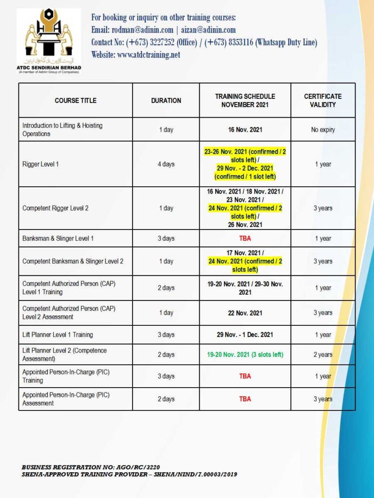 UPDATED TRAINING SCHEDULES – NOVEMBER 2021 (as of 14 November 2021) November 14, 2021 UPDATED TRAINING SCHEDULES – NOVEMBER 2021 (as of 14 November 2021)