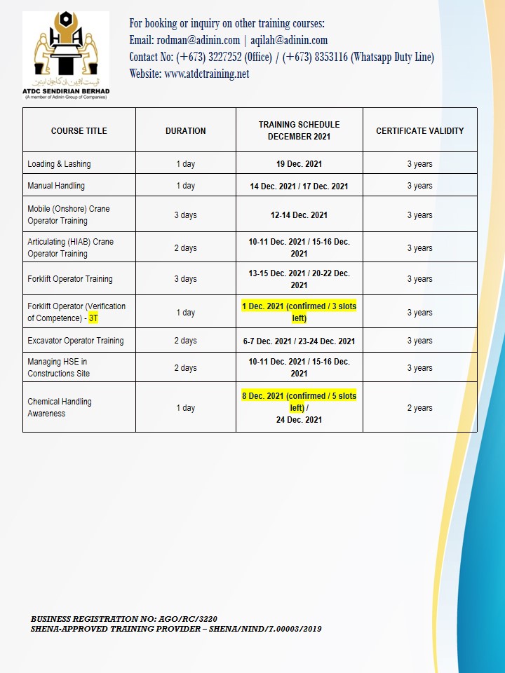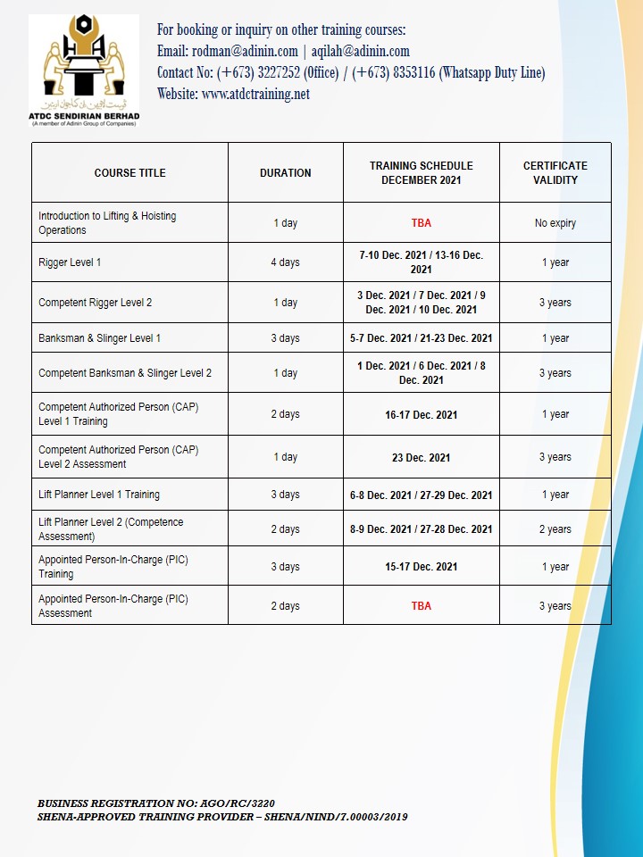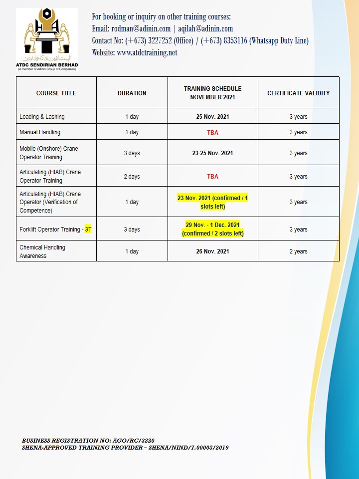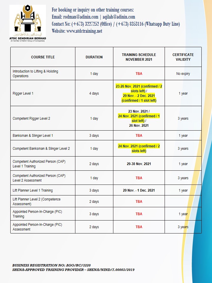 UPDATED TRAINING SCHEDULES – NOVEMBER & DECEMBER 2021 (as of 20 November 2021) November 20, 2021 UPDATED TRAINING SCHEDULES – NOVEMBER & DECEMBER 2021 (as of 20 November 2021)