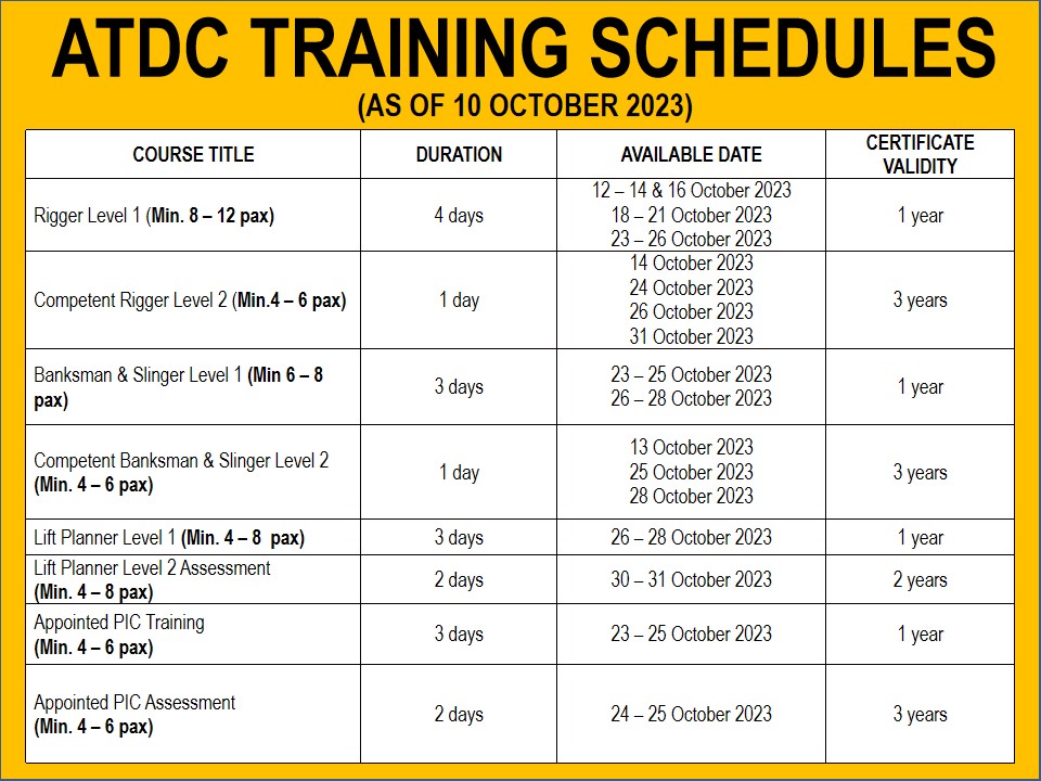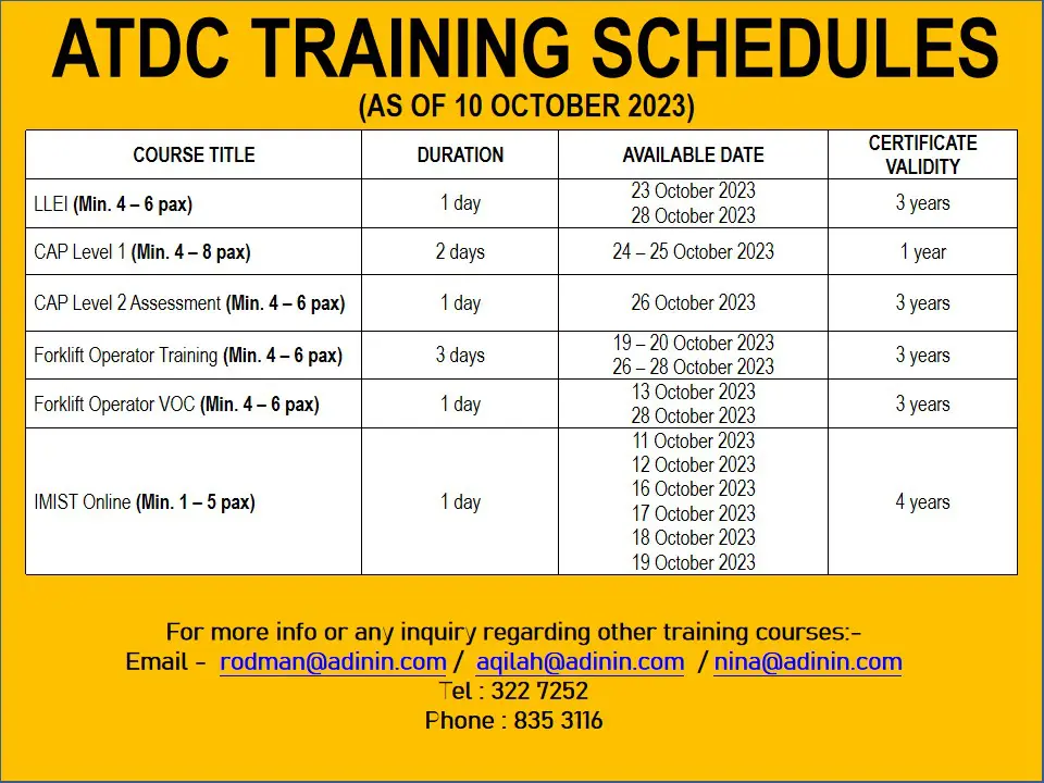 UPDATED TRAINING SCHEDULES – OCTOBER 2023